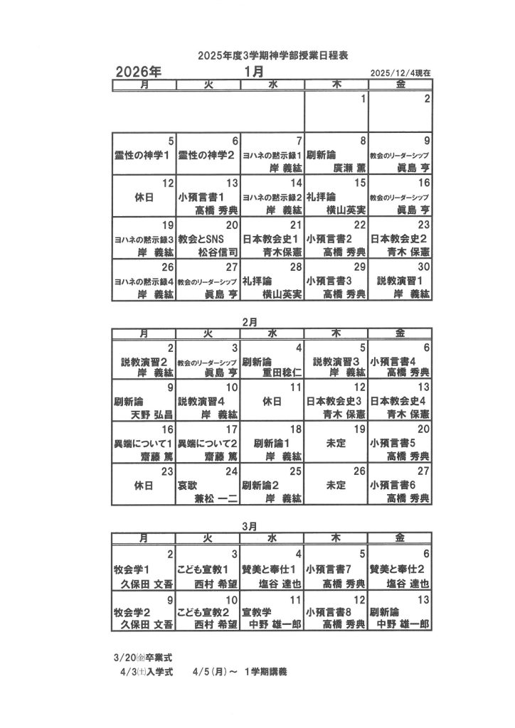 ※コロナウイルスによる講義変更・休止等が発生することもありますのでご了承ください。