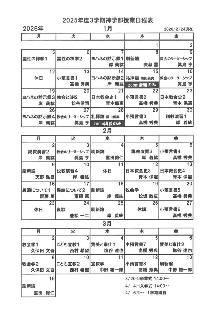 2025年度 3学期 講義日程表